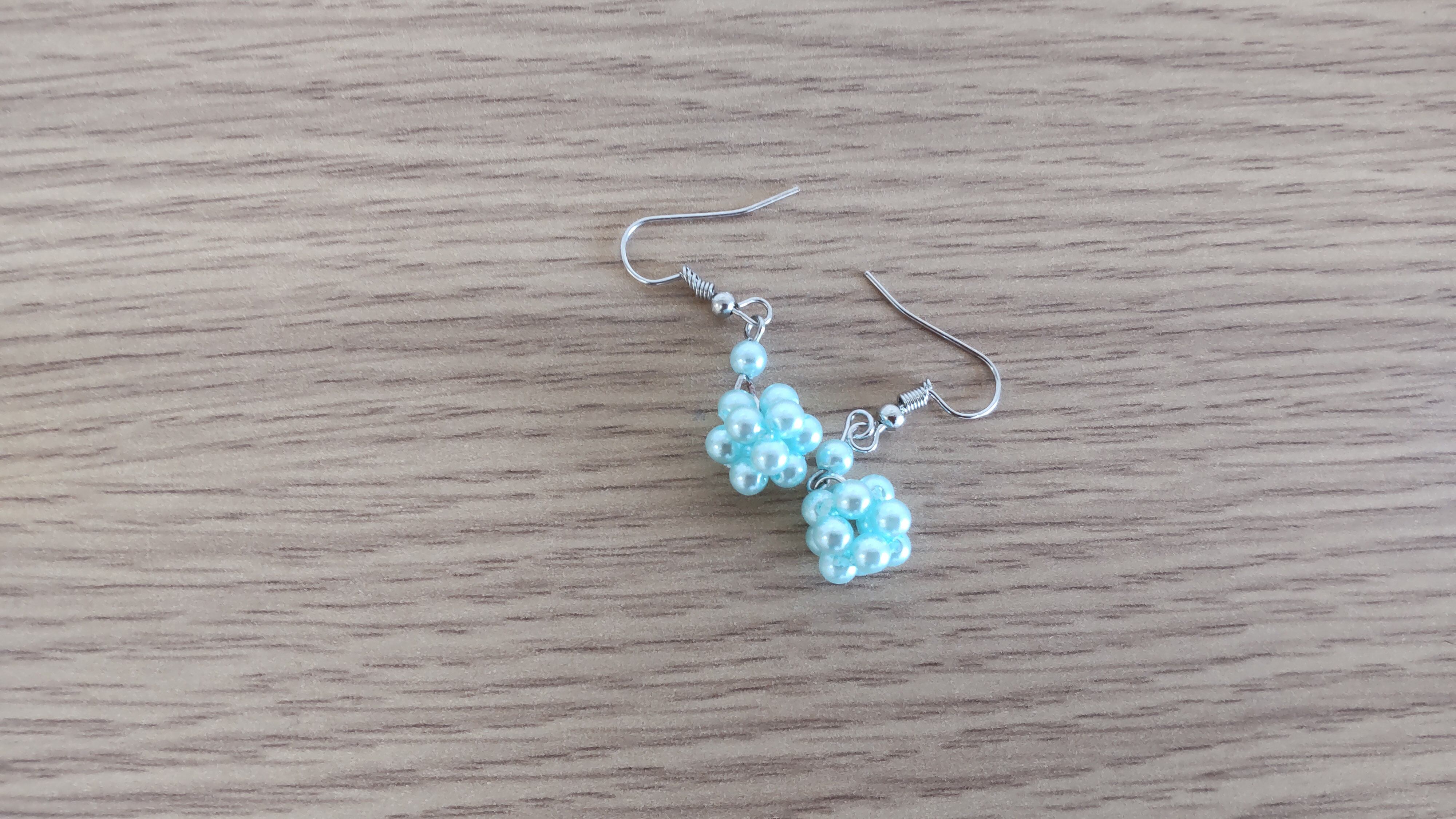 水色ビーズのピアス