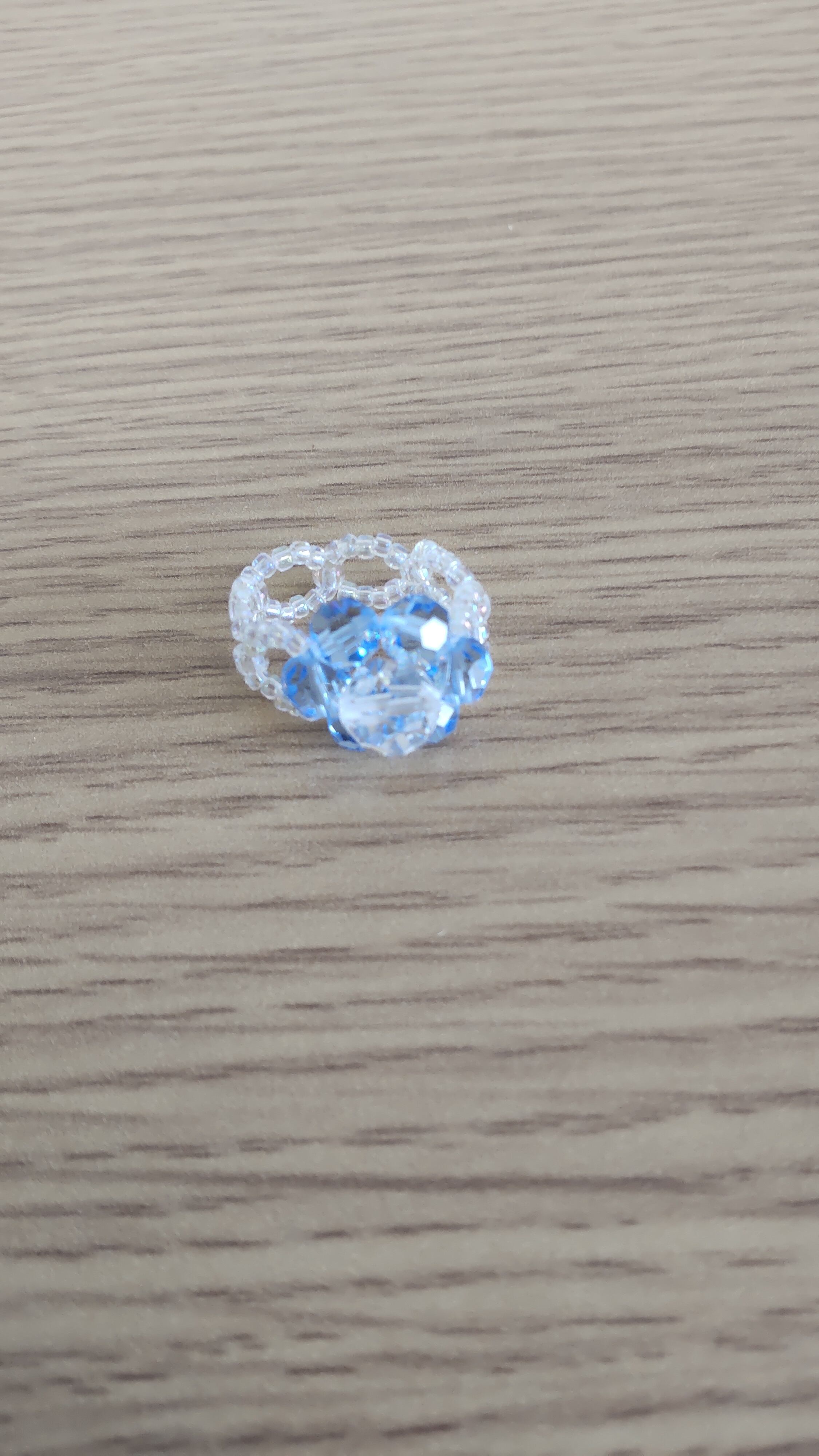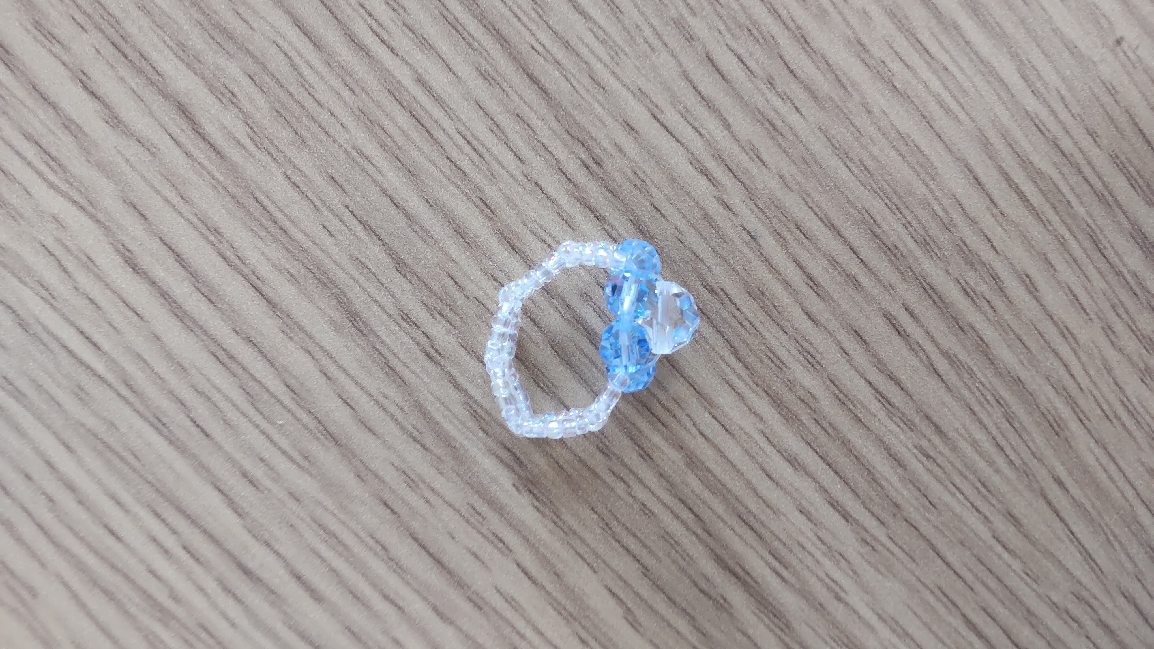 色は透明と水色のクリアなビーズで指輪を作りました♪